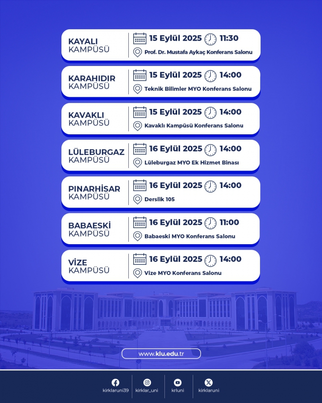 Lüleburgaz Kampüsü – 16 Eylül 2025 / Saat: 14.00 (Lüleburgaz MYO Ek Hizmet Binası)