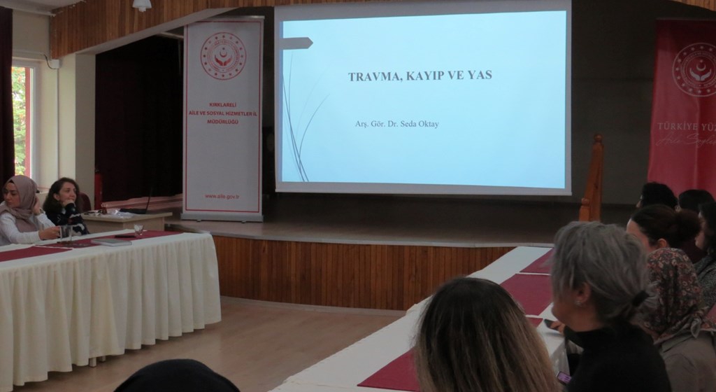 Kırklareli Aile ve Sosyal Hizmetler İl Müdürlüğünün talebi üzerine, 29 Eylül Pazartesi günü saat 14:00'da bölümümüz araştırma görevlilerinden Araş. Gör. Dr. Seda OKTAY tarafından "Travma, Kayıp ve Yas" konulu eğitim semineri düzenlenmiştir.
