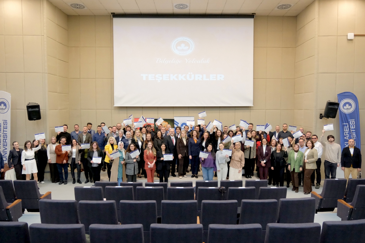 17 Aralık 2025’te gerçekleştirilen törende, üniversitemizde 2025 yılı içinde yürütülen toplam 51 projede emeği geçen 136 akademisyen ve öğrenci için tebrik belgeleri verildi. Törene Rektörümüz Prof. Dr. Rengin Ak, Rektör Yardımcılarımız Prof. Dr. Eylem Özkaya Lassalle, Prof. Dr. Murat Gençbay ve Prof. Dr. Meryem Çamur Demir, akademik ve idari personelimiz ile öğrencilerimiz katıldı.