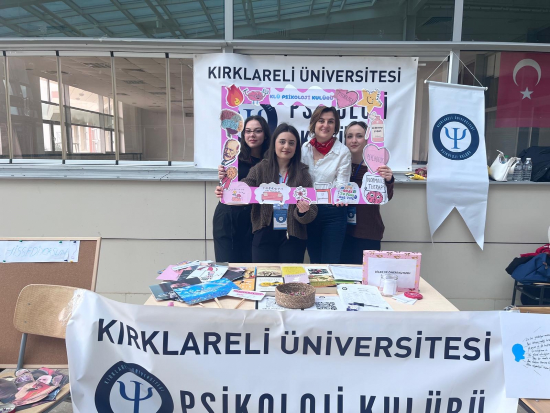 Kırklareli Üniversitesi Psikoloji Kulübü tarafından düzenlenen tanıtım standı, ikinci gününde de öğrencilerin yoğun ilgisiyle devam ederek başarıyla tamamlandı. İki gün boyunca standı ziyaret eden öğrencilere kulübün faaliyet alanları, amaçları ve dönem içerisinde gerçekleştirilmesi planlanan etkinlikler hakkında bilgilendirmelerde bulunuldu.